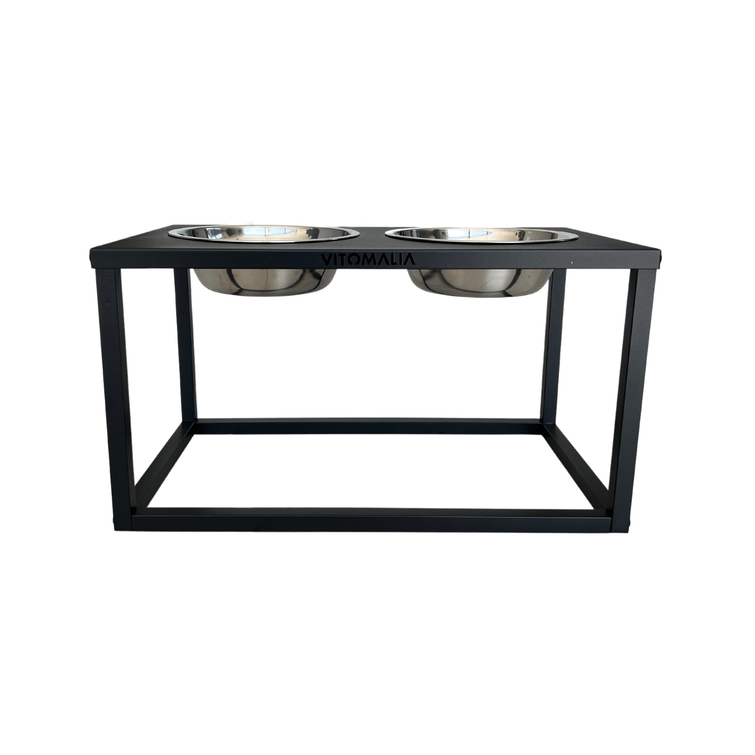El Estación de alimentación para perros Luxus Edition es un soporte de 2 cuencos con recubrimiento de polvo y dos cuencos de acero inoxidable. Los dos cuencos tienen un diámetro de Ø 22 cm (= 1,5 litros). Con la Estación de alimentación se suministra un total de dos cuencos de acero inoxidable. La goma en el borde de los orificios de los cuencos garantiza que éstos no resbalen y no se oigan con fuerza en el soporte.