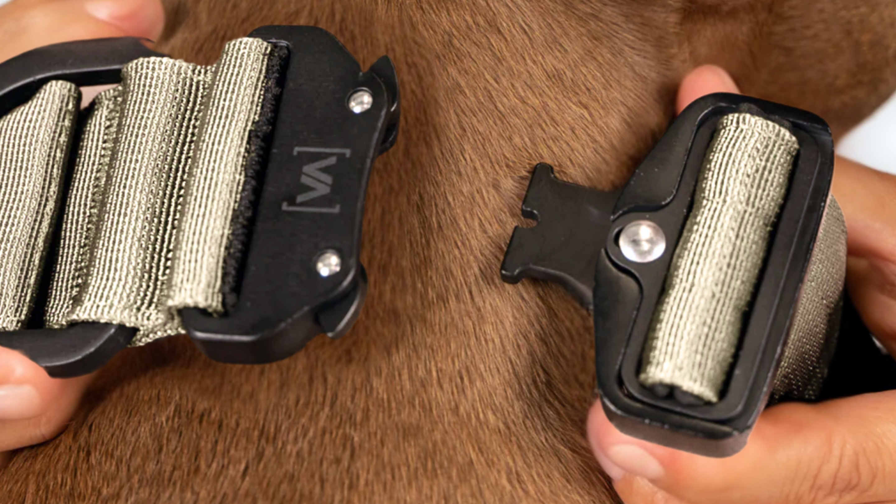 La fibbia è realizzata in robusto alluminio duro ed è facile da aprire e chiudere. Tutti gli altri componenti metallici, come gli anelli a D e i moschettoni, sono realizzati in acciaio inox anodizzato ad alto spessore per garantire la massima stabilità e durata. Questi metalli speciali forniscono un ulteriore livello di sicurezza che i Collari convenzionali spesso non possono offrire.